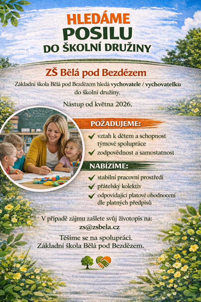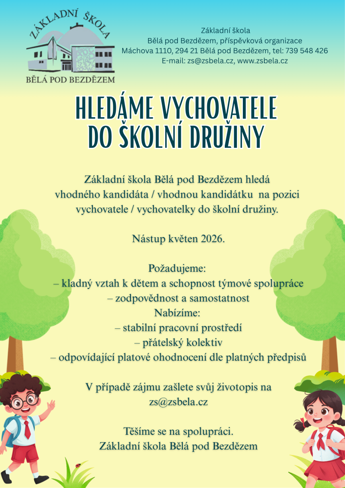 s velkým potěšením vás vítám na nových webových stránkách. Jako nový ředitel a bývalý žák této školy mám k tomuto místu hluboký osobní vztah. Bělá pod Bezdězem je mým rodným městem a naše škola je místem, kde jsem získal základy svého vzdělání a formoval své hodnoty.